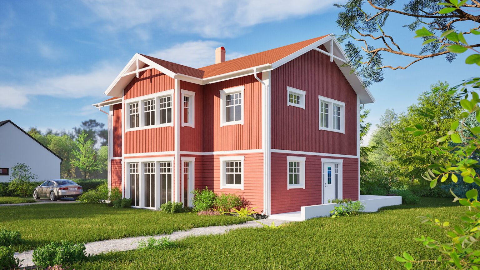 Magnifikt tvåvåningshus med traditionell arkitektur som för tankarna till sekelskiftets charm och elegans. Med en generös invändig yta på 173 m² erbjuder detta hem rymliga och ljusa utrymmen för hela familjen att trivas i. Huset är noggrant designat för att maximera både solljus och utsikt, tack vare stora fönsterpartier på båda våningarna som låter dagsljuset flöda fritt genom rummen. Den öppna planlösningen skapar en harmonisk atmosfär där varje rum känns inbjudande och luftigt. På bottenvåningen välkomnas du av ett öppet kök och vardagsrum med en elegant U-formad kökslösning. Här finns gott om plats för matlagning och samvaro, där familj och vänner kan umgås i en trivsam miljö. Ett stort utrymme för klädvård underlättar vardagens bestyr, och ett praktiskt arbetsrum erbjuder en perfekt plats för hemarbete eller studier. Övervåningen rymmer rejäla sovrum som erbjuder komfort och avskildhet. Ett av sovrummen har en lyxig walk-in closet för extra förvaring och bekvämlighet. Ett allrum på denna våning ger ytterligare utrymme för familjens aktiviteter och avkoppling. Det stilfulla badrummet kompletterar övervåningen och bidrar till hemmets funktionalitet. Fasaden pryds av en vacker vinkelutbyggnad som tillför karaktär och elegans till byggnaden. Den välkomnande verandan bjuder in till avkoppling och social samvaro utomhus, där du kan njuta av lugna stunder eller umgås med nära och kära. Detta hem kombinerar det bästa av traditionell arkitektur med moderna bekvämligheter och är det perfekta valet för familjen som söker ett rymligt och charmigt boende med mycket ljus och rymd.