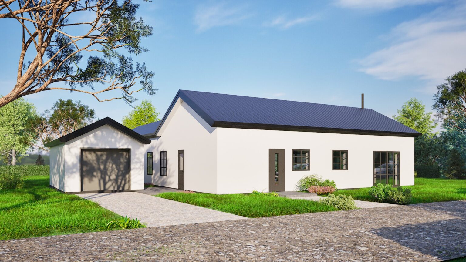 Husmodellen Lavendel är ett modernt och stilrent hem med en genomtänkt planlösning i L-form, vilket skapar en harmonisk kombination av öppna ytor och privata rum. Med en boyta på 158 m² erbjuder huset gott om plats för både sociala sammankomster och avskildhet.