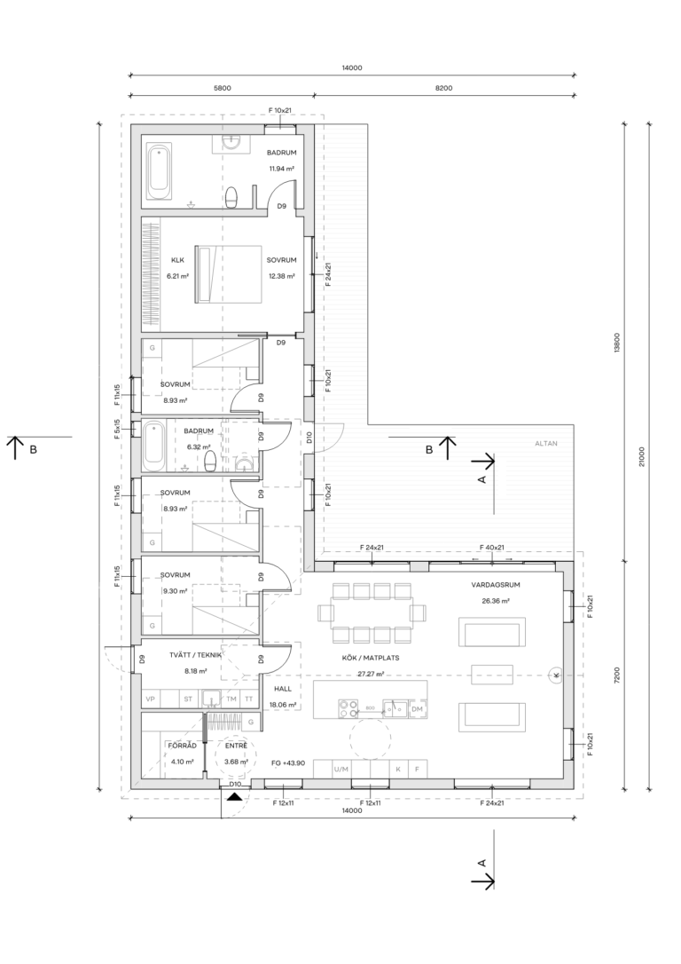 Den genomtänkta planlösningen erbjuder flexibla ytor för både umgänge och avskildhet, med gott om förvaring och smart disponerade rum för att maximera komfort och funktionalitet i vardagen.