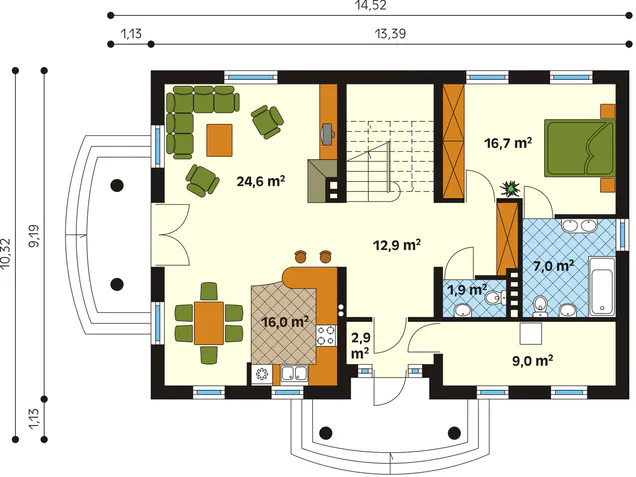 • Elementów ozdobnych poza obrysem budynku np. ramy żelbetowe, pergole drewniane