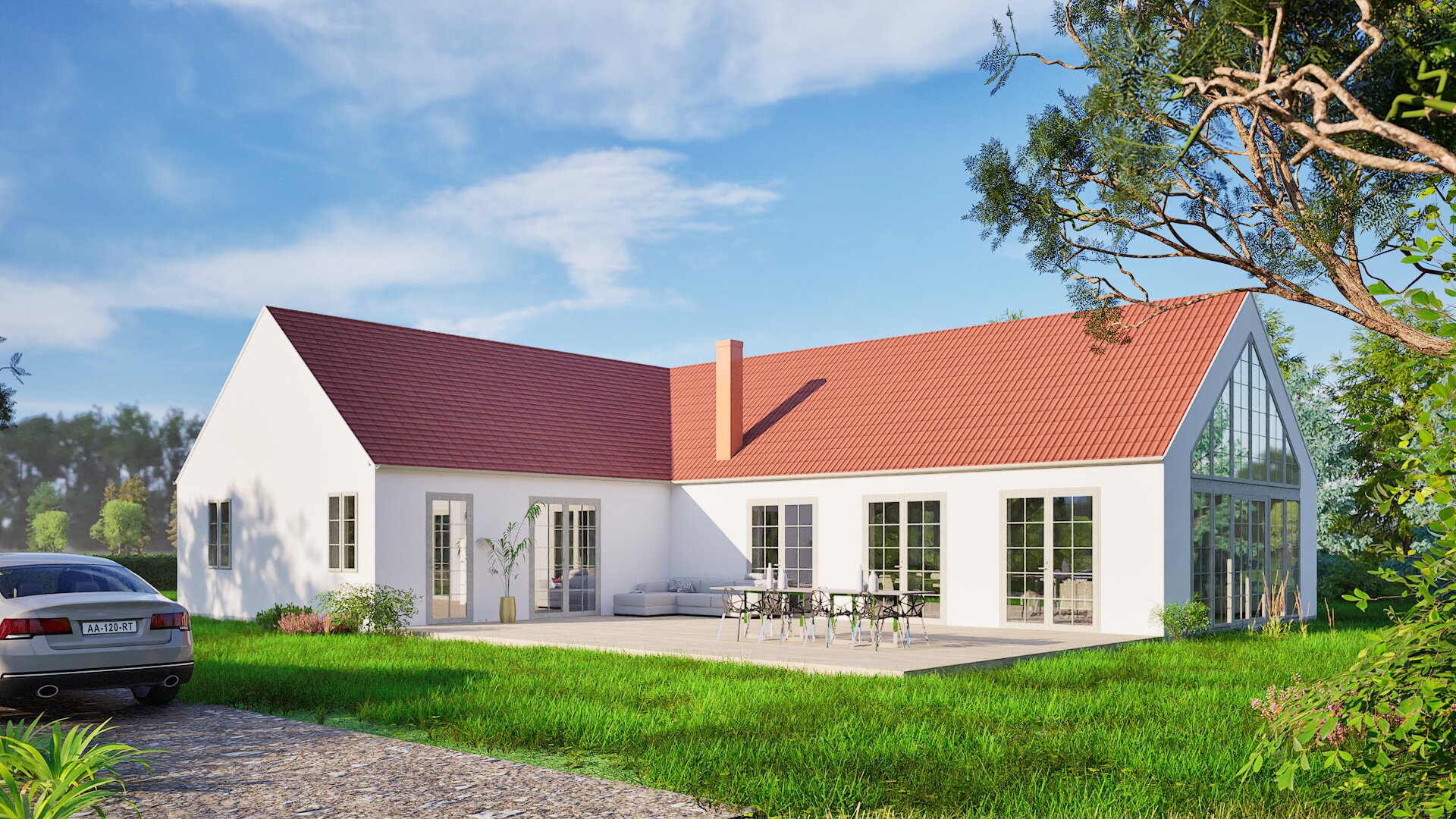 Modernt men ändå klassiskt hus på 163 m²􀯗–􀯗ett enplanshem som förenar stilren design med överlägsen funktionalitet. Den öppna och luftiga planlösningen skapar en känsla av rymd och ljus, där varje detalj är noggrant genomtänkt för att maximera komfort och estetik. Huset erbjuder två rymliga sovrum, där huvudsovrummet är avskilt för extra integritet och har en egen garderob samt ett lyxigt badrum. Det tredje sovrummet har i detta fall förvandlats till ett exklusivt ska􀆯eri och en vinkällare􀯗–􀯗en dröm för mat- och vinälskare som uppskattar extra förvaring och en plats för sina samlingar. Det centrala köket och vardagsrummet utgör hemmets sociala nav. Här möts familj och vänner i en öppen miljö med stora fönster som släpper in rikligt med naturligt ljus, vilket skapar en harmonisk koppling mellan inne och ute. Den separata tvättstugan vid entrén underlättar vardagens bestyr och bidrar till ett välorganiserat hem. Dessutom finns ytterligare ett stilfullt badrum för gäster och övriga familjemedlemmar. Huset är funktionellt och stilrent designat för både vardag och fest. De högkvalitativa materialen och den genomtänkta arkitekturen gör detta hem till en plats där du kan njuta av livets bästa stunder i en miljö som andas modern elegans.